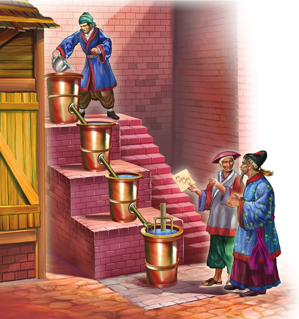 Китайские водяные часы, составленные из нескольких сосудов