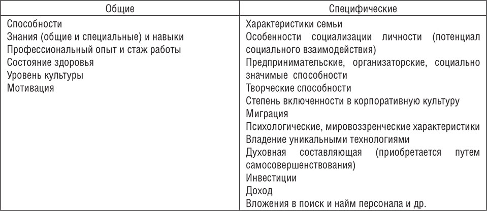 Таблица 1.1.1. Составляющие человеческого капитала