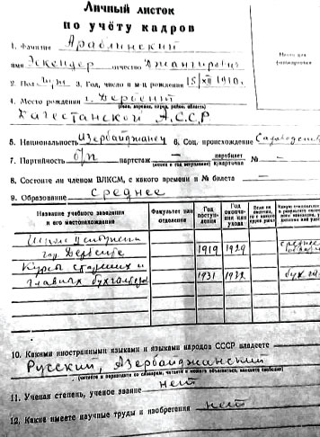 В семейном архиве Джангира Эскендеровича хранится «Личный листок по учету кадров», написанный собственноручно его отцом, Эскендером Джангировичем, 4 мая 1965 г., где в графе «национальность» записано «азербайджанец». «Азербайджанец» записано и в сохранившейся «Книжке красноармейца» гвардии старшины Араблинского Эскендера Джангировича, выданного 1 июня 1946 г. В интернете, на портале «Память народа»[30], можно найти два «Наградных листа» о представлении к ордену Красной Звезды и медали «За боевые заслуги» гв. ст. сержанта Араблинского Эскендера Джангировича, 1910 г. рожд., азербайджанца, беспартийного, призванного Ермакским РВК г. Сталинграда[31].