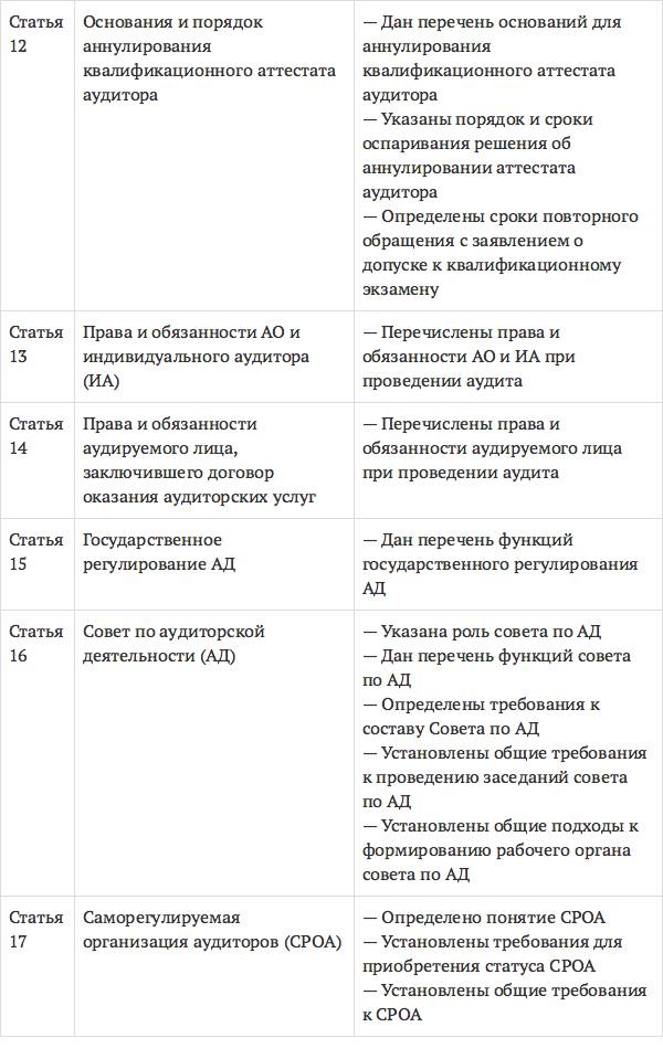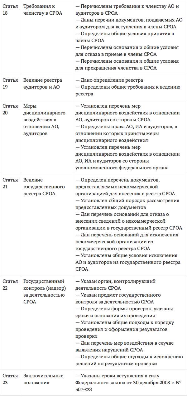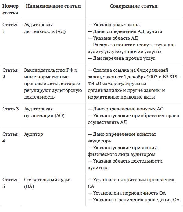 Структура и содержание Федерального закона от 30 декабря 2008 г. № 307-ФЗ «Об аудиторской деятельности»