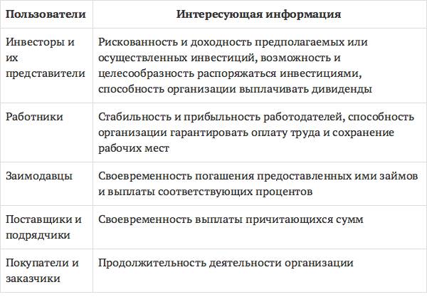 Интересы пользователей в области информации, подтверждаемой аудиторами