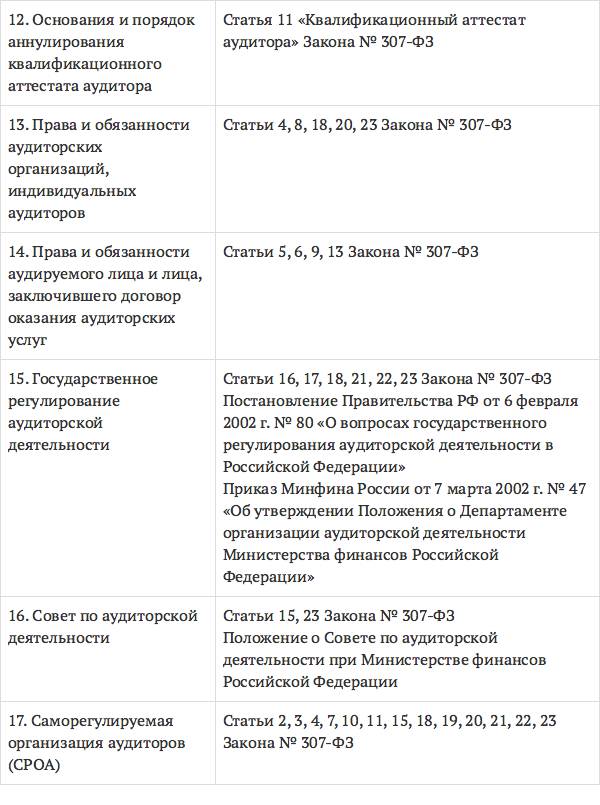 1. Основные законодательные и нормативные документы, регулирующие аудиторскую деятельность в РФ