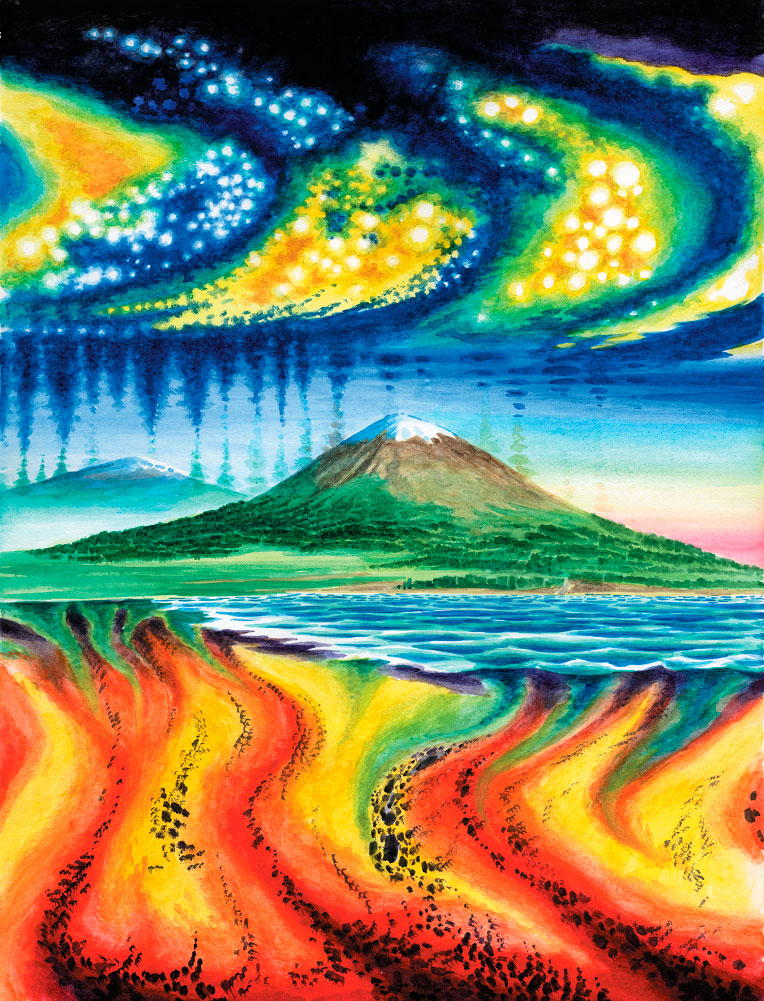Так и пошло с тех пор. Ночь сторожит покой на Земле. Как только опускает она свои черные покрывала, все погружается в темноту и безмолвие. А потом ей на смену приходит веселый, сияющий День, и вокруг становится светло и радостно.