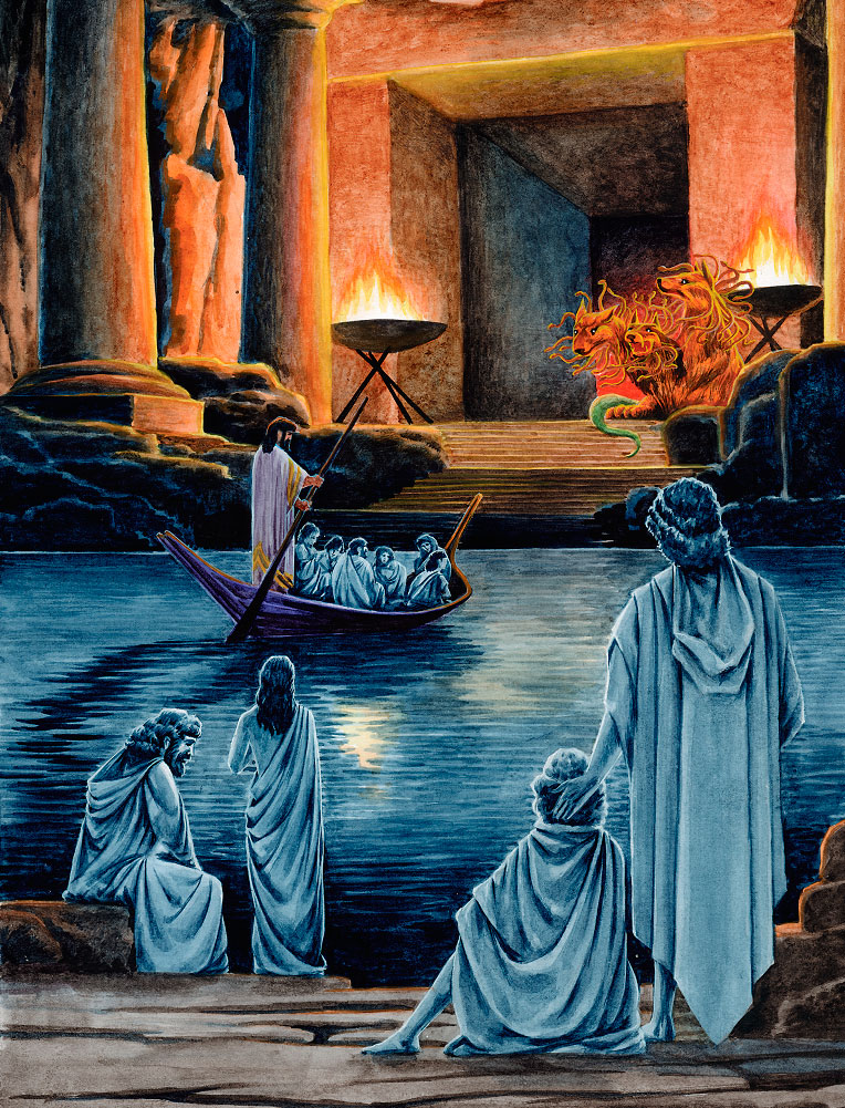 Течет на границах подземного царства священная река Стикс, на ее берега и прилетают после смерти души умерших. Терпеливо и безропотно ждут они, когда приплывет за ними перевозчик Харон. Нагружает он свою ладью безмолвными тенями и везет их на другой берег. Только в одну сторону везет он всех, обратно его лодка всегда плывет пустая.