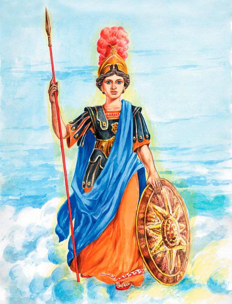 Вот так и родилась Афина Паллада. Но не только воинской отвагой славилась она, защищая всех несправедливо обиженных. Она покровительствовала греческим героям, хранила крепости и города, а по уму и мудрости вскоре сравнялась она с самим Зевсом. Ее так и называли – богиней мудрости и справедливой войны. И еще у нее было одно любимое дело, в котором не было ей равных. Она очень любила ткать полотно, и никто не мог превзойти ее в этом искусстве. Да и состязаться с ней было опасно. Все знают, как поплатилась Арахна, дочь Идмона, которая захотела стать выше Афины в этом деле.