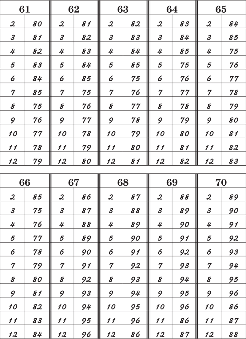 Например, Вы загадываете вопрос № 13 «Скоро ли я выйду замуж?». Смотрите круг счастья под номером 13, загадываете любое произвольное число от 2 до 12. Допустим, вы загадали число 6. Ему в круге счастья соответствует номер 36. Запоминаем число 36 и ищем его в ключах к ответу. Ему здесь соответствует номер 172. Далее ищем ответы под общим номером 172 и, вспомнив, что загадали число 6, ищем ответ на свой вопрос в блоке 172 под номером 6. В данном случае ответ будет: «Еще не скоро, но тем выгоднее».