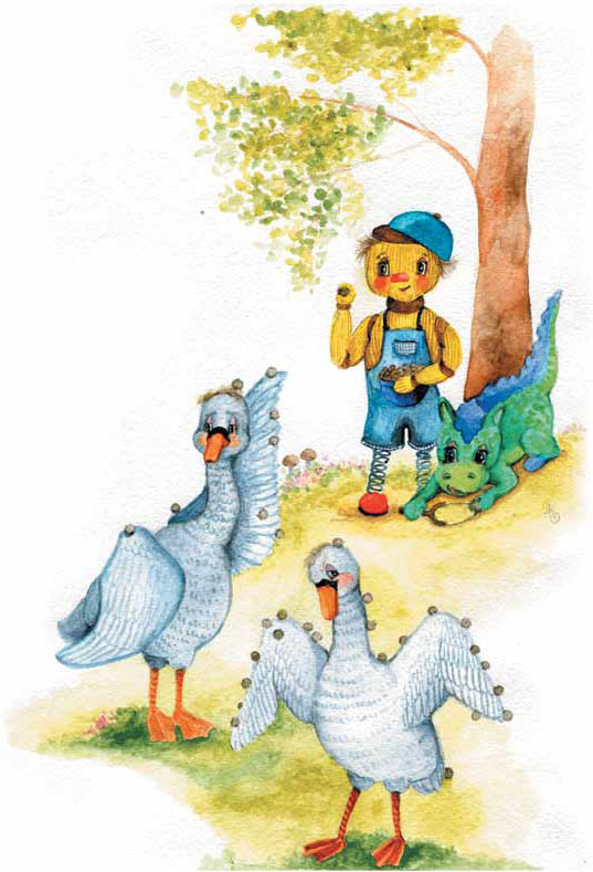 Гуси-лебеди не любили Страшилка и Зардона за то, что они часто бросали в них репьи колючие. Облепят репьи крылья – ни взмахнуть, ни отряхнуться не могут. А Баба Йога птичек холила, теплой водичкой из леечки поливала, лапки им промывала.