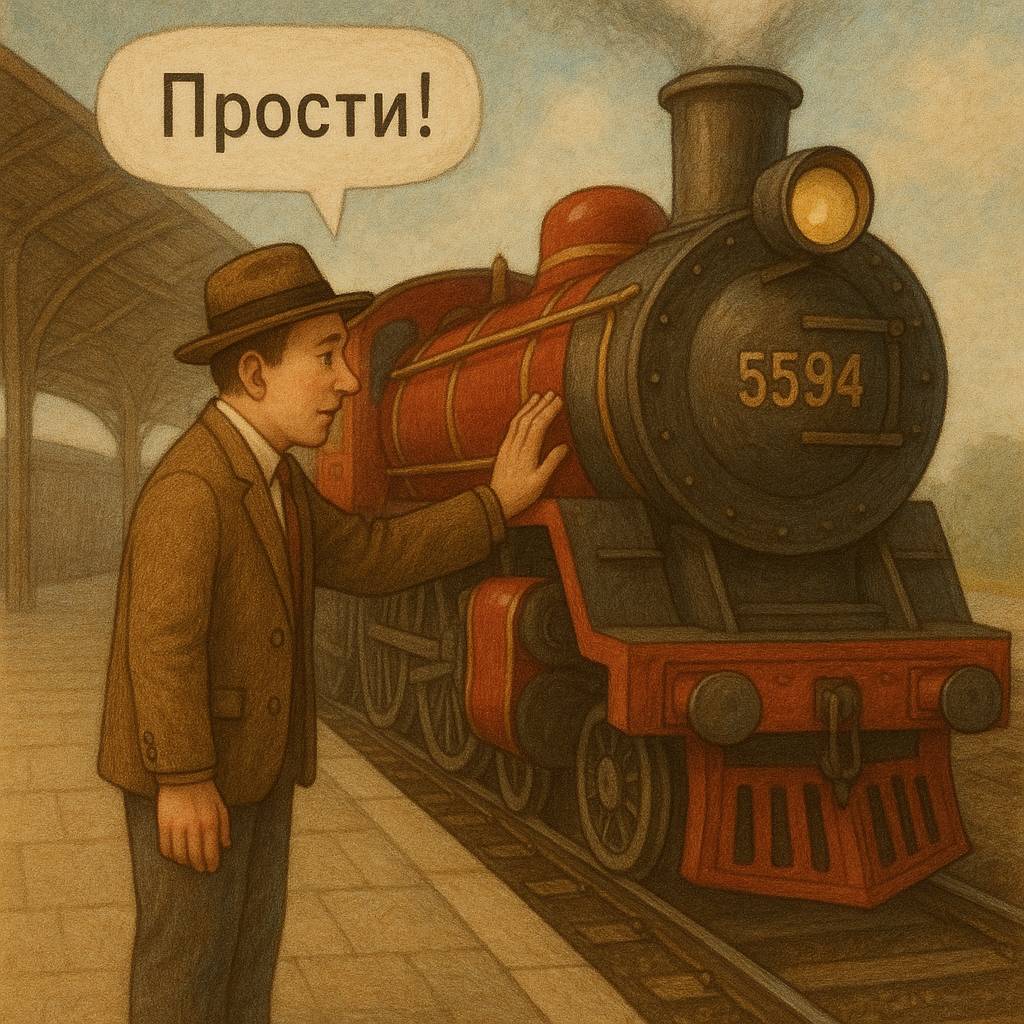 Поезд, действительно, стоял на перроне и ждал его. Человек подошел к поезду, дотронулся до него рукой и сказал: «Прости!»