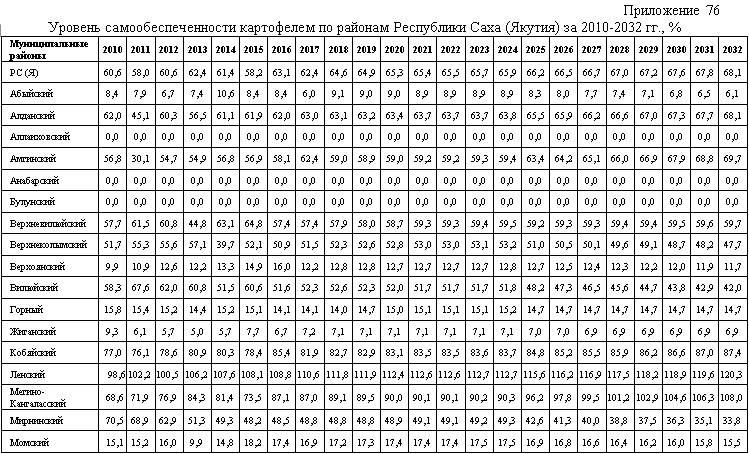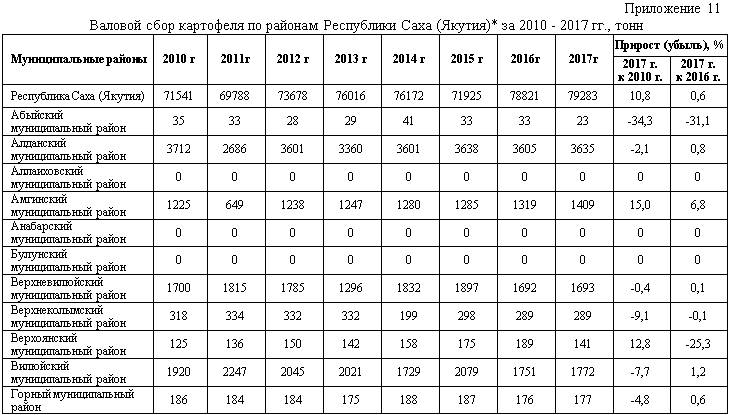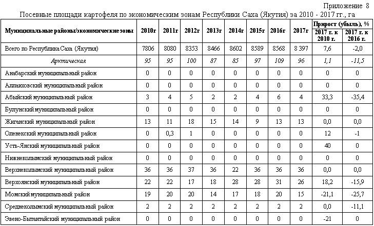 – картофелем – в Аллаиховском, Анабарском, Булунском, Нижне-Колымском, Оленекском, Усть-Янском, Эвено-Бытантайском районах;
