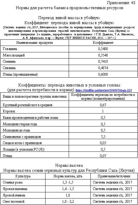 49. Отчет Якутского НИИ сельского хозяйства об оказании услуг по внедрению научных разработок "Баланс продовольственных ресурсов Республики Саха (Якутия) на 2019-2030 годы", 2017.