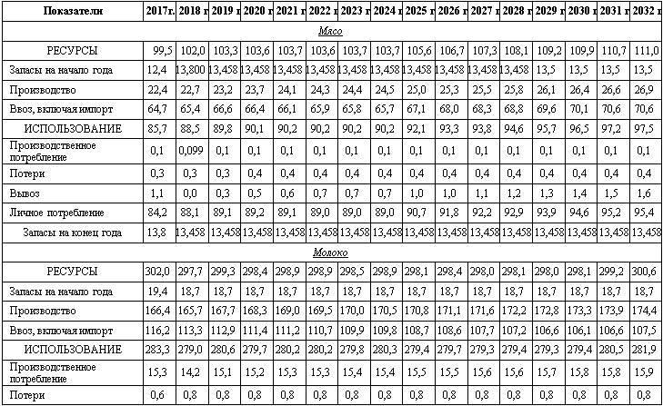 5. Учитывая фактический прирост численности населения на 0,8% за последние 8 лет и ее ожидаемый прирост на 1-1,1% через 9-10 лет, прогнозируется одновременное увеличение объемов продовольственного обеспечения республики, то есть ресурсной части баланса (Таблицы 69-70, Рисунок 8).