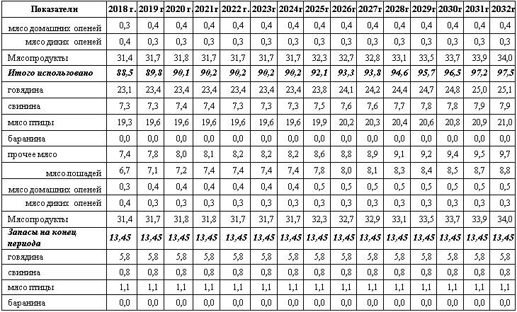 11. В результате прогнозирования баланса мяса и мясопродуктов выявлена возможность вывоза мяса лошадей и оленины в 2019-2032 гг. в объеме от 342 до 1608 тонн в год в убойном весе (мясо лошадей – от 309 до 1473 тонн, оленина, включая мясо диких оленей – от 34 до 134 тонн), что составляет 1,5-6% от общего объема производства мяса.