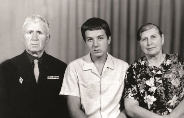 Гена с бабушкой Натальей Павловной и дедушкой Василием Ивановичем.