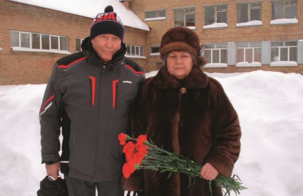 Шевелев Н. В., Кравченко Г. Н., Вуктыл. У здания Вуктыльской средней школы № 2 имени Г. В. Кравченко. 2018 г.