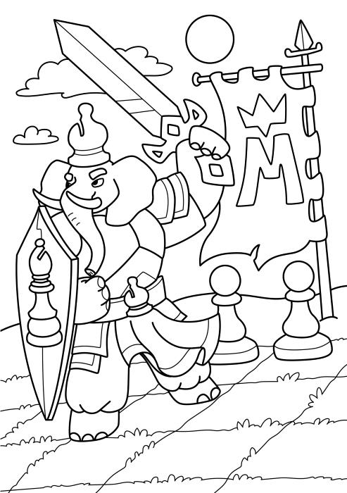 Мне сегодня снился слон.Далеко шагает онЧерез поле, как квадрат,Где стоит врагов отряд.Слон отважно рвётся в бой,Заслоняет нас собой.