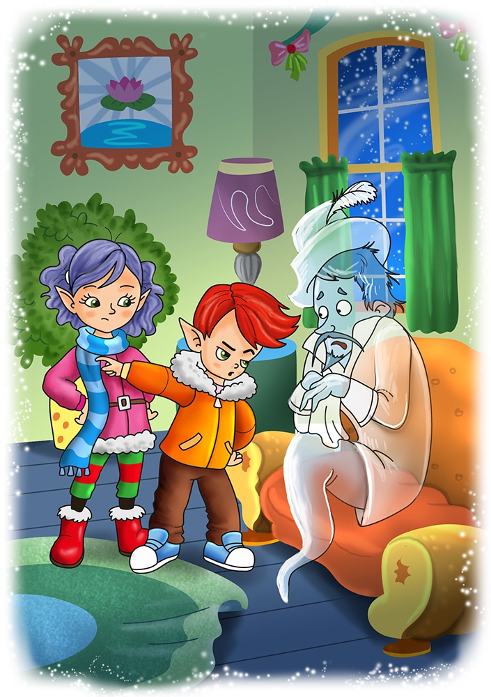 Нижеописанные события случились однажды именно с такими существами – рождественскими эльфами, которые с незапамятных времён служат двум чудесным праздникам – Рождеству и Новому году, сохраняя в людях (а особенно в их детях) веру в сказку и волшебство. Эльфы больше других похожи на нас с вами. И характером, и внешне. У них даже имена такие же, как у нас. Всё зависит от того, на территории какой страны расположен эльфийский населённый пункт. В пределах российских границ живут Анны, Петры и Сергеи, возле американских – Биллы и Дональды, около шведских – Бьорны и Ингмары. Вообще, у эльфов и людей очень-очень много общего. Бывает, волшебные существа даже живут среди нас, выполняя какие-то свои миссии, а мы и не догадываемся, кто перед нами. Но если быть внимательными, эльфов можно распознать по ряду особенностей. Во-первых, они ниже нас ростом; во-вторых, у них у всех огромные зелёные или голубые глаза и уши удивительной формы – с вытянутыми и заострёнными кончиками; в-третьих, они необычно одеваются. Никогда эльф не наденет унылую серую или чёрную одежду. Представители этого рода сказочных существ одеваются ярко, причудливо, с удовольствием красят волосы в необычные цвета. Ну и конечно, они волшебники. Не такие сильные, чтобы превратить человека в корову, но на мелкое бытовое волшебство вполне способны. Благодаря этой особенности эльфы прекрасно понимают речь людей, а некоторые – даже и животных, люди же без труда понимают их.