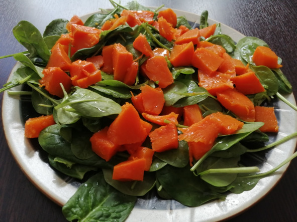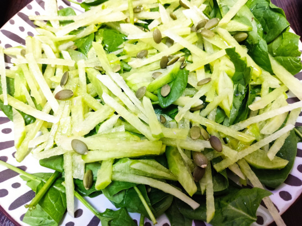 Салат из зелёной редьки, листьев шпината и семечек тыквы