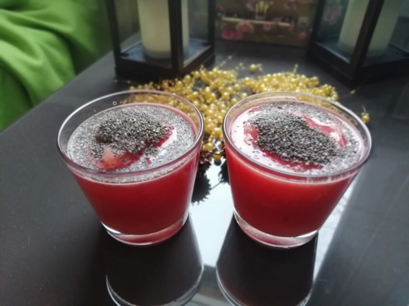 – В арбузный смузи можно добавить семена чиа. Оставить в холодильнике на 1 час для загустения.