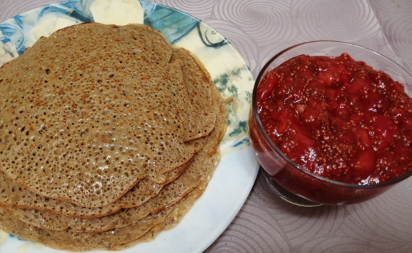 Гречневые блины с вареньем, без сахара и яиц