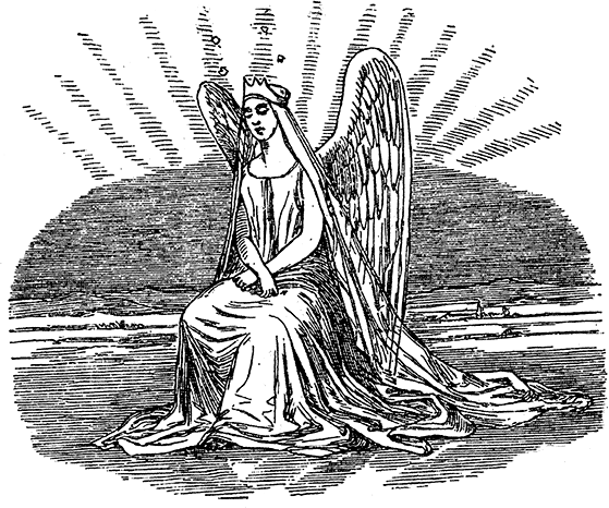 Герда принялась творить «Отче наш»; было так холодно, что дыхание девочки сейчас же превращалось в густой туман. Туман этот все сгущался и сгущался, но вот из него начали выделяться маленькие, светлые ангелочки, которые, ступив на землю, вырастали в больших грозных ангелов со шлемами на головах и копьями и щитами в руках. Число их все прибывало, и когда Герда окончила молитву, вокруг нее образовался уже целый легион. Ангелы приняли снежных страшилищ на копья, и те рассыпались на тысячу кусков. Герда могла теперь смело идти вперед; ангелы гладили ее руки и ноги, и ей не было уже так холодно. Наконец девочка добралась до чертогов Снежной королевы.