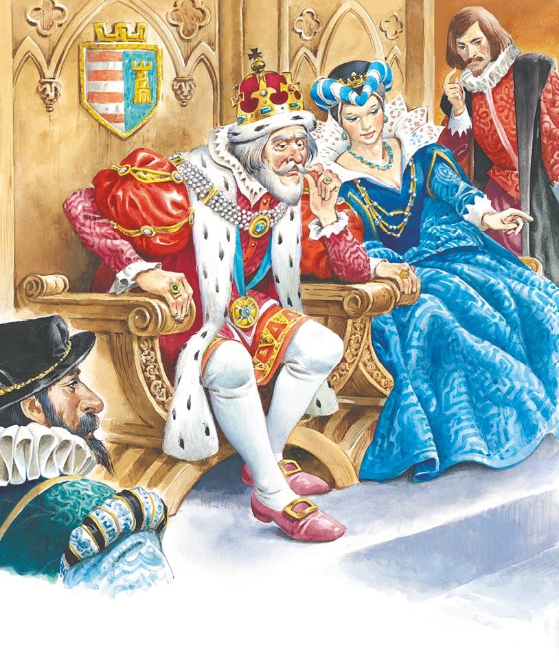 Войдя в королевские покои, кот низко поклонился королю и королеве и молвил: