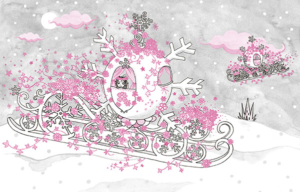 Наконец большой сверкающий экипаж, сделанный изо льда и украшенный белыми и розовыми цветами, остановился у нашей двери. Он стоял на огромных полозьях.