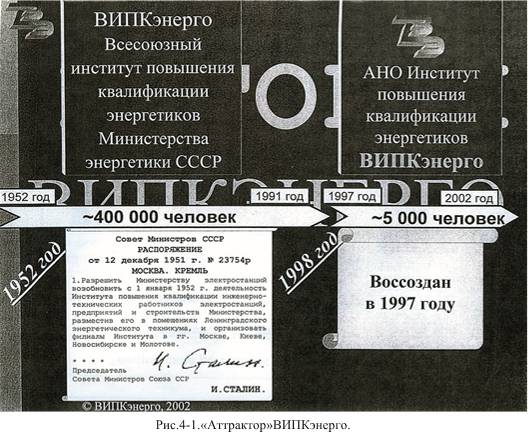 Пик развития ВИПКэнерго как аттрактора (точки притяжения) приходится на 2001–2008 гг. При этом, наряду с интенсивным переобучением слушателей со всех концов страны, удалось резко активизировать научно-исследовательские работы. И это в такие сложные годы и в учебном вузе. В качестве соисполнителей привлекались крупнейшие известные институты и НИИ (МЭИ, ИНЭИ РАН, Академия им. Плеханова и др.). Для этого создавались специальные структуры и консорциумы (фрактальное моделирование).