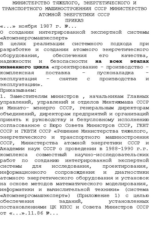 Уже тогда были четко сформулированы миссия и основные задачи, системно решаемые программой «АЭМЭ». Ниже приведен базовый приказ двух министров СССР, определяющий эти задачи (см. стр. 22 Рис. 1.).