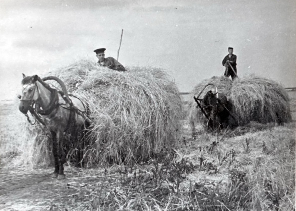 Для обмолота льна, на большом току так же выкладывались снопы, до 50 копен и больше, вокруг становились казаки и туда загонялся табун необъезженных лошадей, которых гоняли по кругу, не выпуская за его черту. Лошади бешено мчались и через четверть часа обмолачивали весь лён.