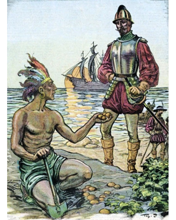 Быт и устройство поселений племени вызвали у путешественника немалый интерес, поэтому он решил на некоторое время тут задержаться. Прогуливаясь по селению индейцев, Самюэль уловил приятный, сладковатый запах, смешанный с дымком. Конечно же, путешественник направился в сторону источника этого аромата, столь сильно пробудившего его любопытство и аппетит. Пройдя мимо несколько хижин, француз наткнулся на молодое семейство индейцев, готовившую у костра то самое, что источало этот дивный запах. Едва увидев моряка, глава семейства тут же начал приветливо махать рукой, показывая, что предлагает гостю отведать с ними только что приготовленное блюдо. Приняв блюдо от очаровательной хозяйки, француз тут же отправил в рот розоватый, слегка обугленный кусочек. Едва коснувшись языком нежнейшей мякоти, моряк сразу ощутил сочный, сладкий, незабываемый вкус чудо-овоща. Не прошло и нескольких минут, как блюдо оказалось совершенно пустым.