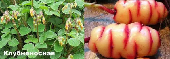 Это растение родственница нашим кислицам, только в отличие от них, она имеет стебель, тогда как у наших кислиц его нет. Клубни этой кислицы некрупные, их размер не превышает 3 – 4 см, они имеют слегка острый аромат, хрустящую структуру и содержат 22—25% крахмала. Их цвет варьирует от жёлтого до пурпурного. Но они содержат кроме крахмала щавелевую кислоту, и поэтому индейцы, выращивающие эту культуру, предварительно вымачивают клубни в воде, потом промораживают и получают так называемое «чуньо» – крахмалоносный продукт, из которого готовят лепешки, пекут хлеб, иногда получают чистый крахмал. Впрочем, среди кислиц есть и сорта со сладковатыми клубнями.