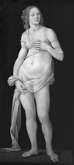 У Креди позирует определенное лицо, чего нельзя сказать относительно Боттичелли. Однако нетрудно убедиться, что понимание формы в обоих случаях согласуется с определенным представлением о прекрасном образе и прекрасном движении, и если Боттичелли, создавая стройную высокую фигуру, всецело руководствуется своим идеалом формы, то и в произведении Креди, несмотря на большую привязанность к натуре, в постановке и пропорциях фигуры чувствуется именно его почерк.