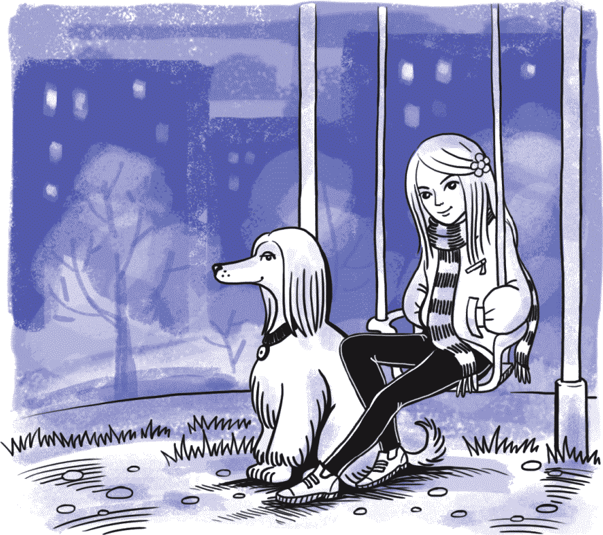 Элька уже ждала. Она сидела боком на детских качелях и чуть покачивалась, отталкиваясь от земли тонкой длинной ногой. Ее здоровенная узкая собака водила за ней мордой вправо-влево, вправо-влево… Когда Витик подошел, Элька перестала качаться, склонила голову набок и спросила, правду ли говорят, что он чего-то там делал страшное и опасное и чуть не погиб? Витик совершенно обалдел и спросил только, кто ей это сказал. Элька опустила голову, помолчала и вдруг, глянув на него исподлобья, спросила: