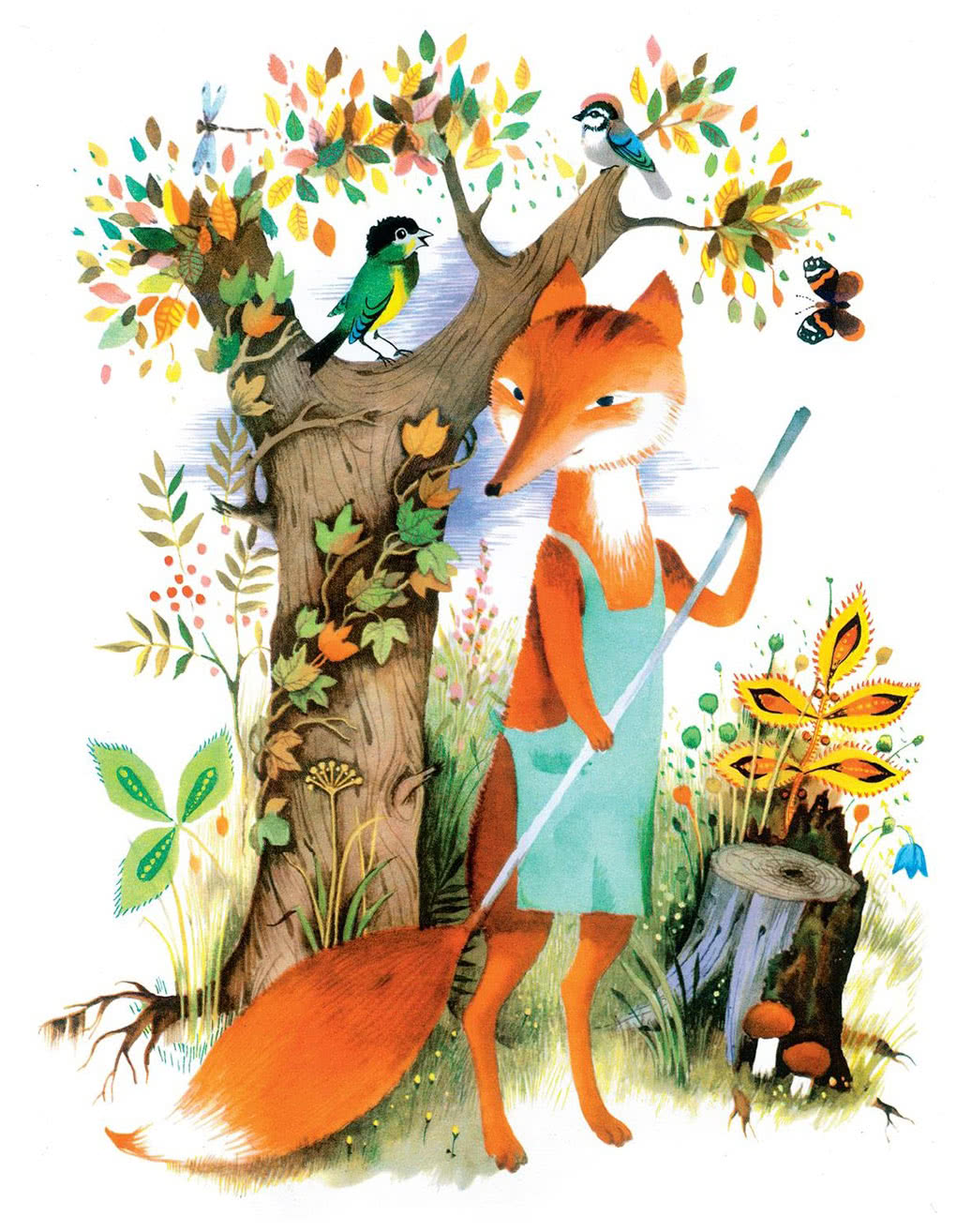 В леса-чудесаМы поедем с тобой.Там бродит у озераЛось голубой.Там чащу хвостомПодметает Лиса,Чтоб чистыми былиЛеса-чудеса.