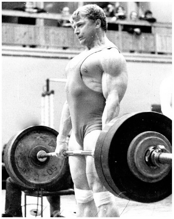 Мощный трицепс позволил мне ровно выступать и по троеборью. Когда я в первый раз вышел на помост по пауэрлифтингу в Эстонии, то жал лежа толчковым хватом, сейчас это принято называть узким. Да и потом, продолжая выступать в Ленинграде на соревнованиях по силовому троеборью, я не стал менять ширину хвата. Мой сильный трицепс делал свою работу. Никогда не считал себя жимовиком, да и к пауэрлифтером тоже себя не относил, а результат в жиме лежа в пределах 180 кг меня удовлетворял. На соревнованиях лучший мой жим лежа был 192,5 кг. Дважды или трижды я пробовал жать «двушку» на тренировках, но безрезультатно.
