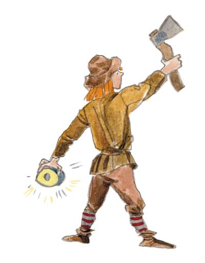 – Смотри! Идёт Пер Гюнт со своей огненной палкой. Спасай скорее телёнка! Не то плохо ему будет!