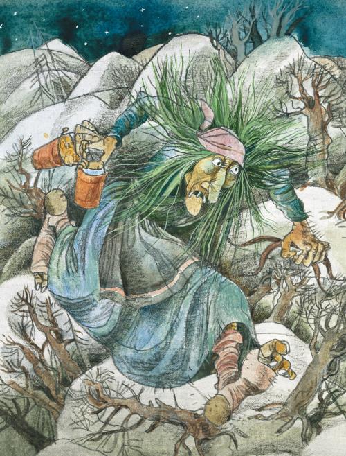 И вот издалека, из-за гор, отозвался чей-то голос, похожий на вой осеннего ветра. Это лесная хозяйка, старая троллиха, услышала, что её зовут, и откликнулась.