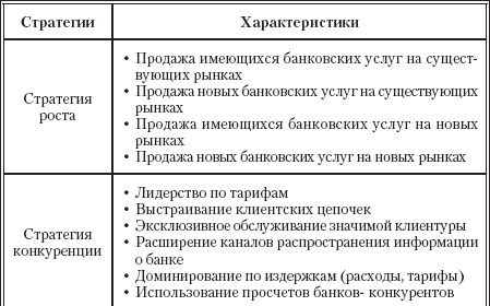 Для того чтобы эффективно заниматься поиском и привлечением клиентов, необходимо понимать, как ваш банк позиционирует себя на рынке и какой стратегии придерживается. Чаще всего большинство банков придерживается одновременно трех взаимодополняющих стратегий: стратегии роста, стратегии конкуренции, стратегии приоритетов.