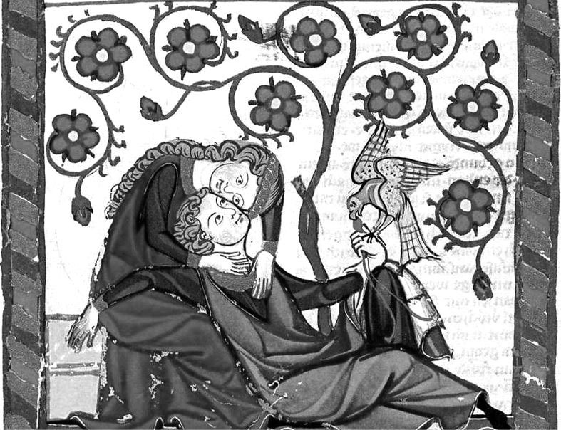 Рис. 1. Тристан и Изольда. Старинная миниатюра. Взято из Интернета.