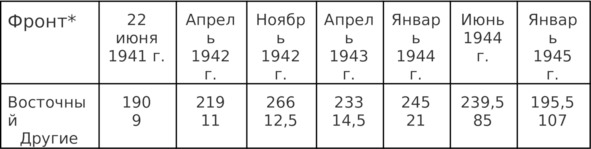 Приведенные в таблице данные свидетельствуют, что до лета 1944 года на Восточном фронте находилось в среднем в 12—20 раз больше вражеских дивизий, чем на других фронтах, где действовали войска США и Великобритании.