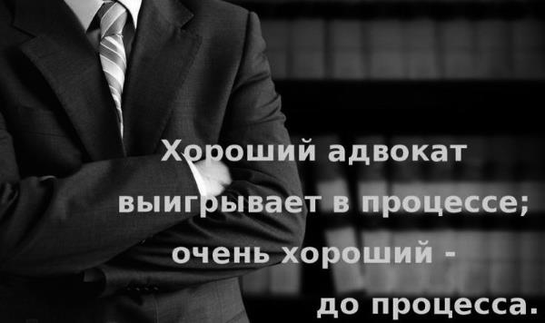 «Я должен позвонить своему адвокату» – так говорят, люди внезапно попавшие в сложные отношения с законом. На первом месте ни друзья, ни родители или ближайшие родственники, ни коллеги по работе, а только его величество АДВОКАТ и БИБЛИЯ для передачи просьбы Господу Богу. Господь Бог любит всех своих детей, они все для него родные. Но Господь высоко в небе, а адвокат рядом. Он и служит проводником всех просьб несчастного.