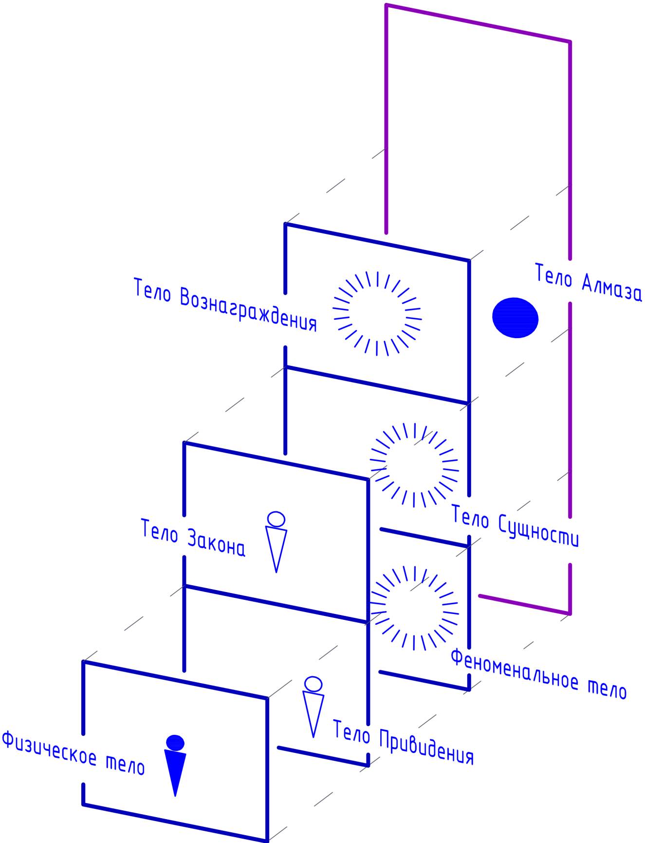 (ваджракая) – связано с сахасрара чакрой. Истинное эго. Пребывает в состоянии нирваны.