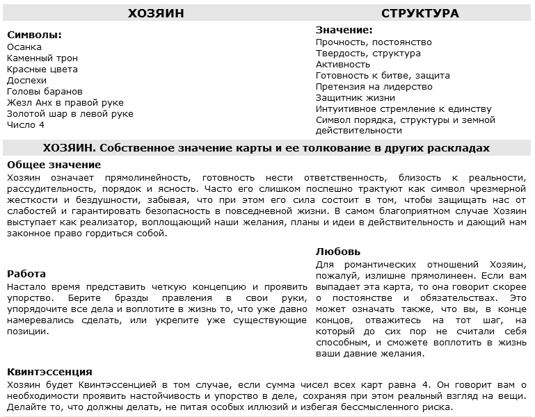 Хозяин в раскладе «Компас»ПОЗИЦИЯ 1 – О чем идет речь