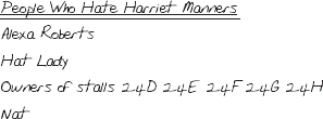 “I’m Harriet Manners,”I admit finally and then I put my hand out to shake his, realise it’s sweaty with nerves, swoop it back in and pretend I’m scratching my knee instead.