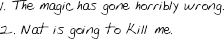 I look at Nat in alarm. “Well?” she says and her voice starts to wobble. “What’s going on, Harriet?”