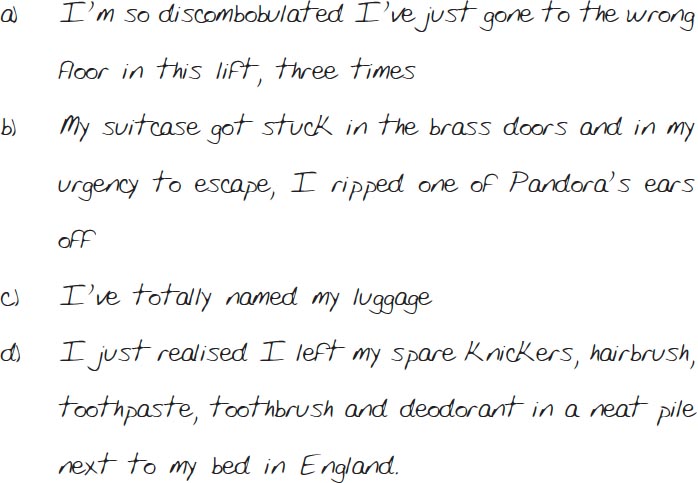 Jittering, I grab my panda suitcase from the kerb and feel my now-sweaty hands slip on the handle. My heart is starting to hammer like a tiny, enthusiastic tap-dancer.
