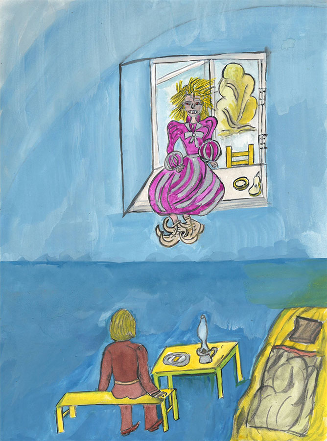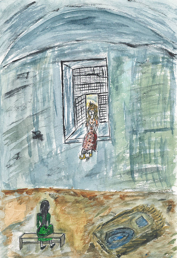Я честно сказала, что мне любопытно и хочется с ним познакомиться. Тогда он поднял голову и ничего мне не сказал. Второй раз я его видела, когда его посадили в нижнюю комнату, где обычно держат провинившихся людей. Я спустилась к нему через окно и подошла к нему. А он начал смеяться надо мной…