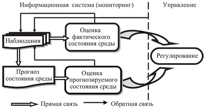 Данные мониторинга необходимы для разработки конкретных мер по предупреждению критических, опасных и вредных для экосистемы и здоровья человека ситуаций, сохранения популяций организмов и их сообществ. В общем виде мониторинг окружающей среды можно представить в виде блок-схемы (рис. 1.2).