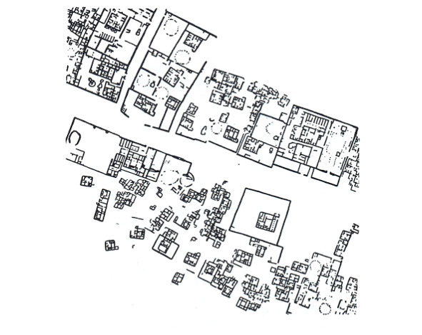 Европа ва Осиёдаги қадимий аҳоли пунктларининг бош режалари схемалари: 1 – Кастелаццо террамара (Шимолий Италия, бронза асри); 2 – Нандиаварт типидаги ҳинд қишлоғи (Манасарнинг трактатига кўра, милодий 1-минг йилликнинг ўрталарига тўғри келади); 3 – қалъада жойлашган Қўй-Қирилган-Қальа (қадимги Хоразм); 4 – Даниянинг Треллеборг яқинидаги Норманларнинг қалъаси (милодий 10-аср); 5 – ҳиндларнинг Падмака типидаги қишлоғи (Манасара маълумотларига кўра); 6 – Тўпроқ-Қальа шаҳри (қадимий Хоразм)