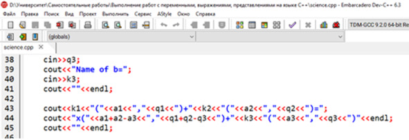 cout <<«» < Данный код представляется уже в программе как (Рис. 2.4.1). Рис. 2.4.1. Запись в программе всех блоков ввода